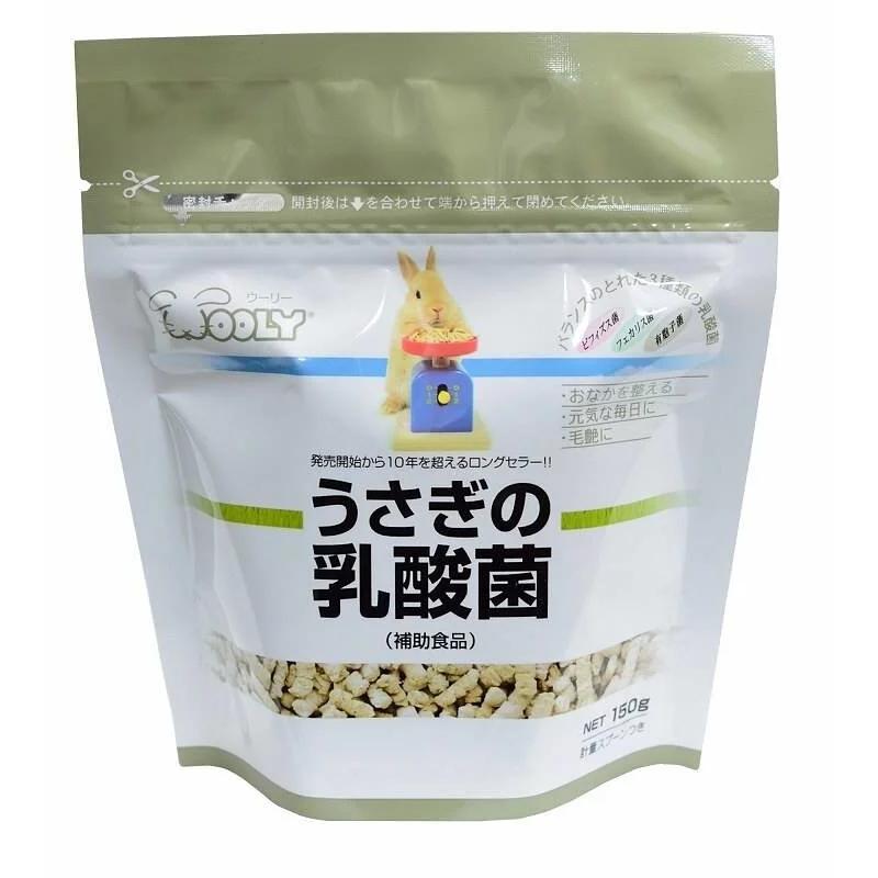 『兔子的乳酸菌』裏使用了3種類的乳酸菌。 這些乳酸菌都是腸內存有的益生菌,它們所分擔的作用也不同。雙歧桿菌(比菲德氏菌) 維持腸內的益生菌和細菌的生態平衡,有效促進腸蠕動及順利排便。FK-23 能夠承受強酸。在被食用後能不被胃酸殺死,順利進入腸道。所以它 提高免疫力的效果要比一般的乳酸菌更佳。孢子乳酸菌 孢子乳酸菌的菌體四周有外殼保護著,能抵抗高溫、胃酸、膽汁、乾燥。 所以它被稱之為到達腸內後存活率最高的乳酸菌種類。 孢子乳酸菌到達腸道後,會自行破殼而出然後大量繁殖并同時製作乳酸 來控制有害細菌的增長,維持腸內細菌的生態平衡。■原材料: 乳酸菌、小麥粉、玉米澱粉、米糠、寡糖、脫脂奶粉、食物纖維、絲蘭精華 ■成 分: 粗蛋白…………… 14.1 % ±0.5 % 粗脂肪…………… 1.8 % ±0.2 % 水 分…………… 7.6 % ±0.3 % 灰 分…………… 3.3 % ±0.2 % 鈣………………… 0.19 % ±0.003 % ■給予量: 體重1kg以下……1~2g/天 體重2kg以下……2~4g/天 體重3kg以下……3~6g/天 ■ 注意: ● 『兔子的乳酸菌』和『鳳梨酵素活性E』的給予時間要錯開、間隔至少2小時以上 ● 請避免放置在陽光直射的場所、應放在陰涼的地方保存 ● 本商品為兔寵專用、非主食類 ● 請放置在嬰幼兒接觸不到的地方 ● 開封後存放時請關緊自封袋口、請盡快食用完 ● 根據乳酸菌的存放場所、温度等不同、有時候會有酸味道溢出、但并不影響商品的質量及口味、請放心給您的愛兔食用。